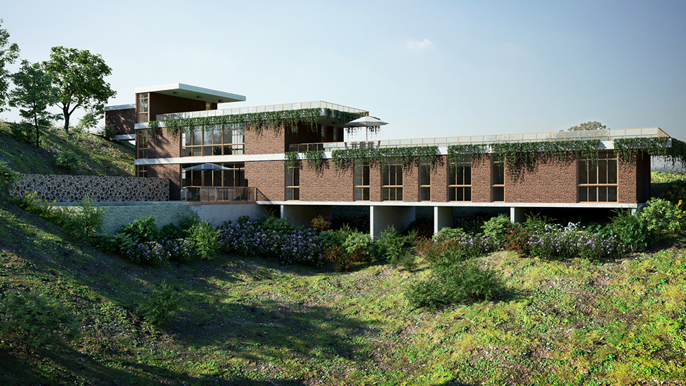 A adoção de uma planta linear reforça a clareza organizacional e potencializa a ventilação e iluminação naturais, além de favorecer a integração entre os ambientes internos e externos. A estrutura independente em concreto, associada ao uso de tijolos cerâmicos aparentes e esquadrias em madeira e vidro, compõe uma linguagem arquitetônica que busca equilíbrio entre robustez e acolhimento. Essa materialidade foi pensada em resposta às condições climáticas locais, caracterizadas por temperaturas mais amenas em comparação ao litoral, resultando em uma ambiência mais aconchegante e protegida.