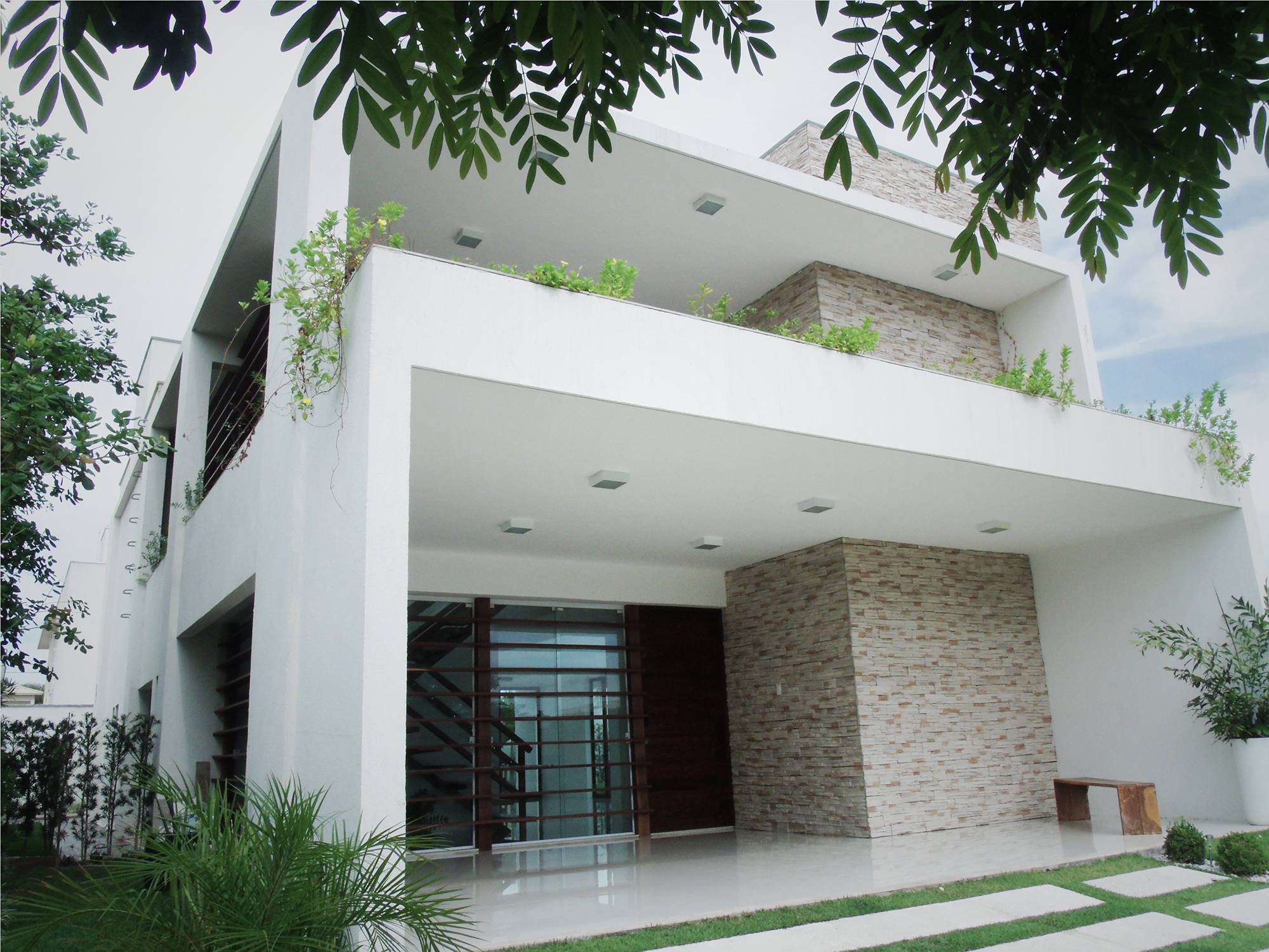 Esteticamente, a casa faz uma releitura contemporânea das residências tradicionais do interior do Ceará. A utilização predominante da cor branca, combinada com elementos em madeira natural, remete às casas caiadas, com coberturas cerâmicas e estruturas de madeira, tão presentes na paisagem popular nordestina. Esse diálogo entre tradição e contemporaneidade fortalece a identidade do projeto.