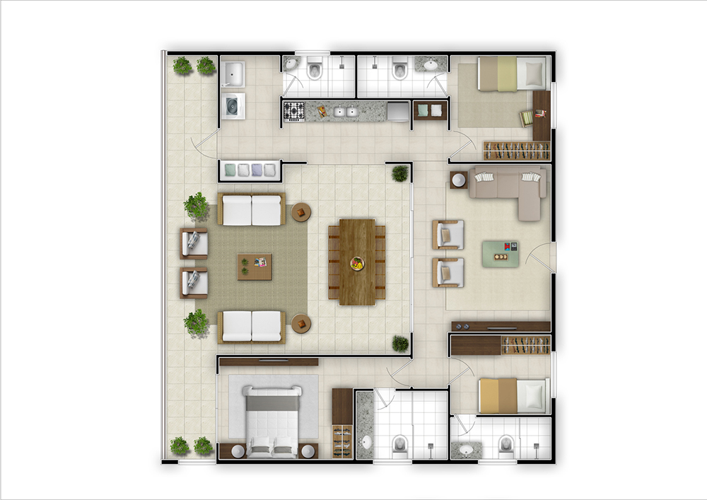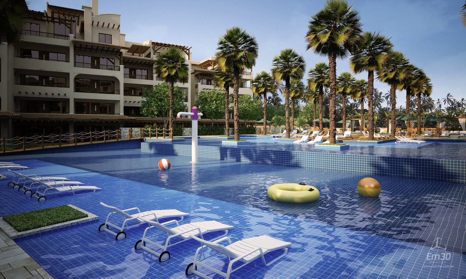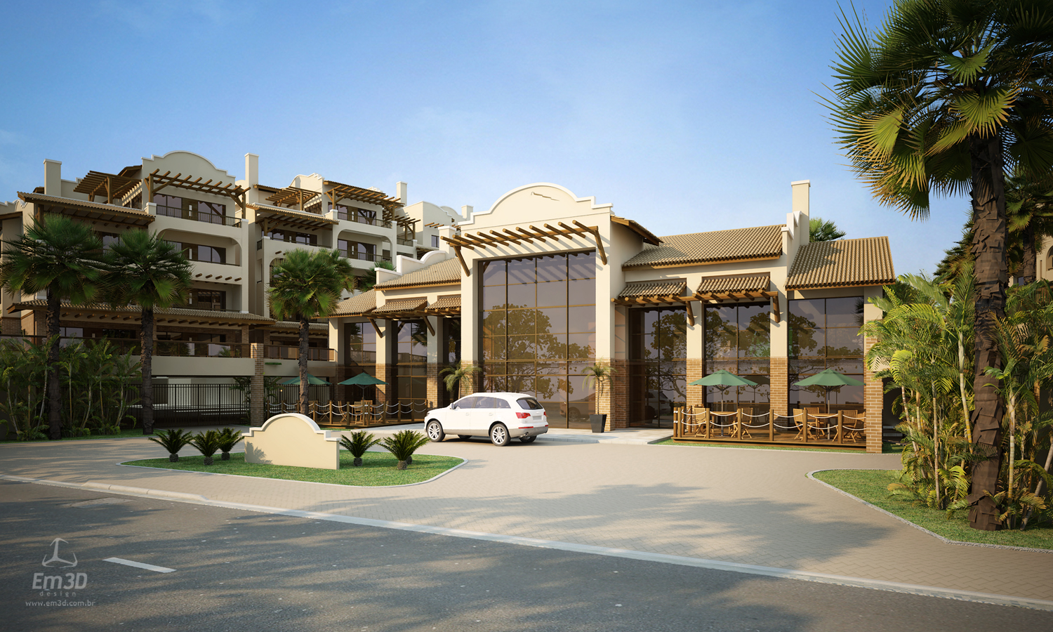 Embora o empreendimento valorize amplamente a relação visual com o mar, sua concepção busca também a criação de um ambiente interno qualificado, configurando um verdadeiro “oásis” protegido. Dessa forma, o condomínio oferece ao usuário uma dupla experiência: a fruição da paisagem litorânea e, simultaneamente, a vivência de um espaço interno com características de clube, dotado de conforto, segurança e diversidade de usos.