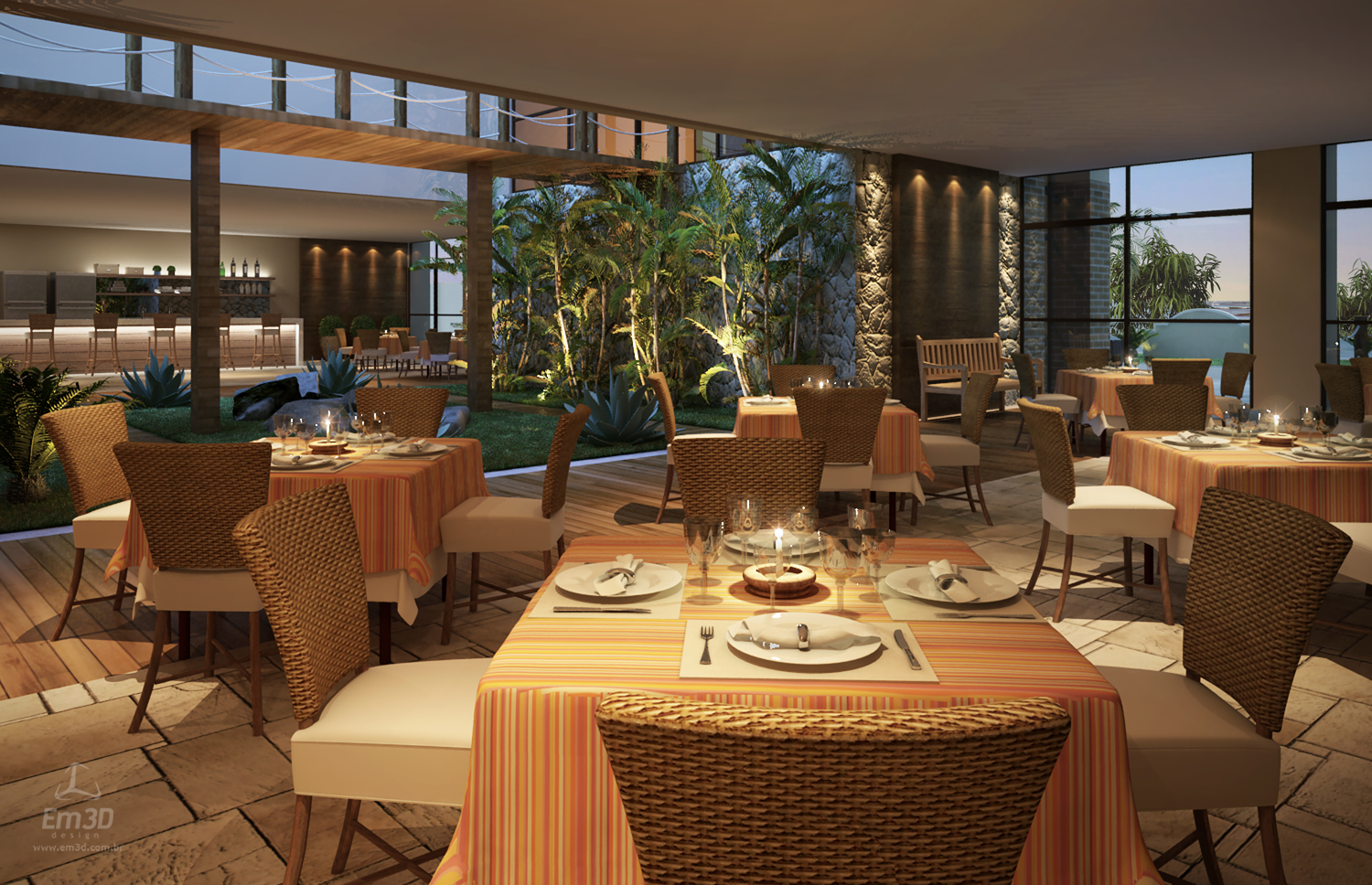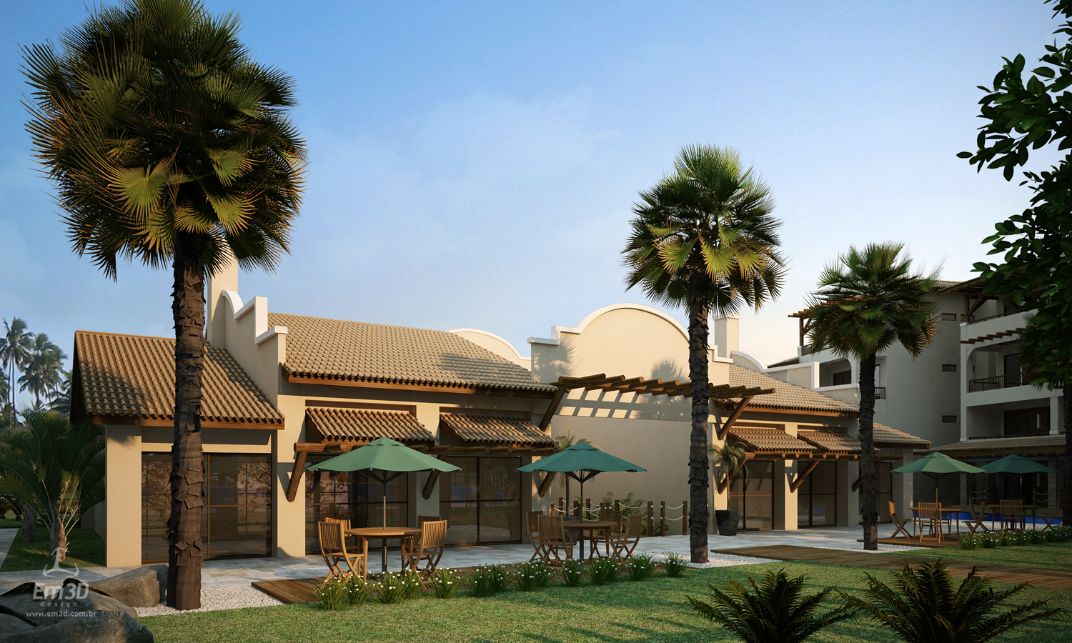 A proposta adota como diretriz estética a fusão entre a arquitetura mediterrânea e a arquitetura das casas de praia do Ceará. Essa aproximação se materializa na adoção de volumetrias simples, coberturas inclinadas, uso expressivo da madeira e predominância de tonalidades claras, especialmente o bege, compondo uma ambiência que valoriza a luminosidade, o conforto térmico e a integração com o entorno litorâneo.