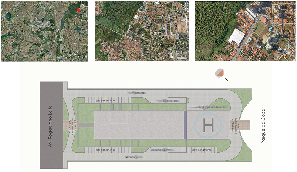 O projeto do Edifício Gerardo Bastos, localizado na Avenida Rogaciano Leite, no bairro Guararapes, em Fortaleza, insere-se em uma área estratégica da cidade, marcada pela proximidade com o Parque do Cocó e por um contexto urbano em consolidação. Implantado em um terreno de 9.863,63 m², com 50 metros de testada voltada para a avenida e aproximadamente 200 metros de profundidade, o projeto lida com condicionantes significativas, tanto do ponto de vista urbano quanto ambiental.