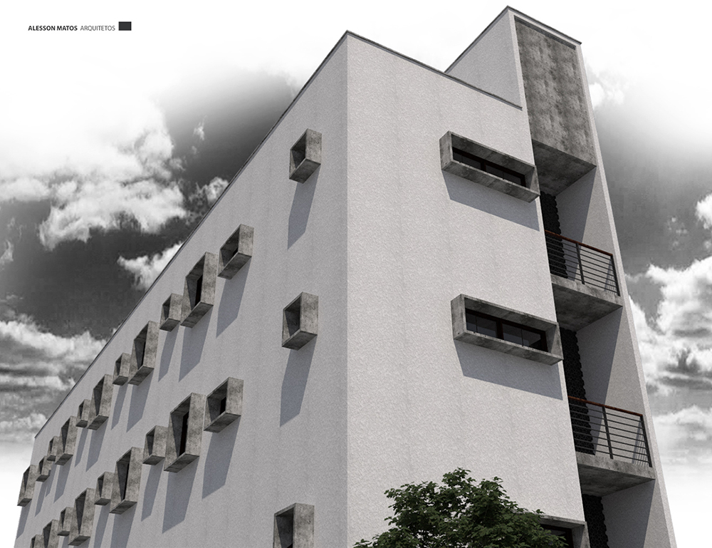 A implantação em esquina foi explorada como oportunidade para ampliar a relação com o entorno urbano, permitindo melhor ventilação cruzada e maior incidência de iluminação natural nas unidades. Essa condição também contribui para a leitura volumétrica do edifício, que se apresenta de forma clara e objetiva na paisagem.