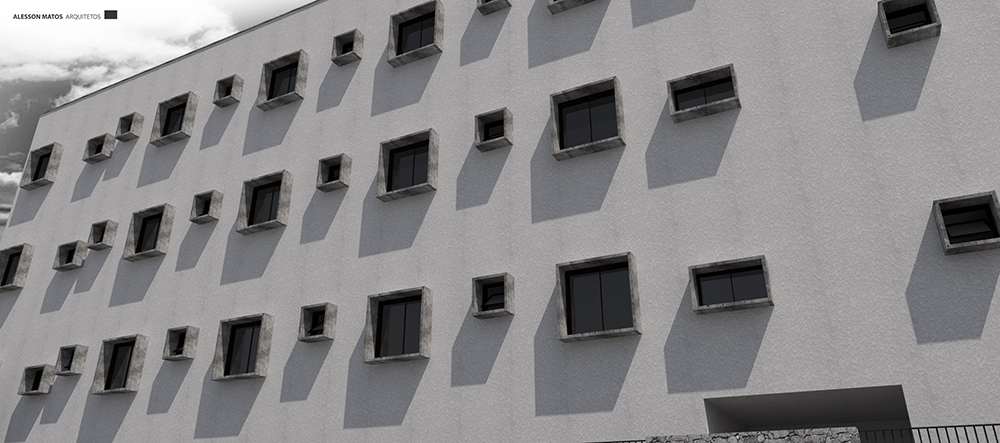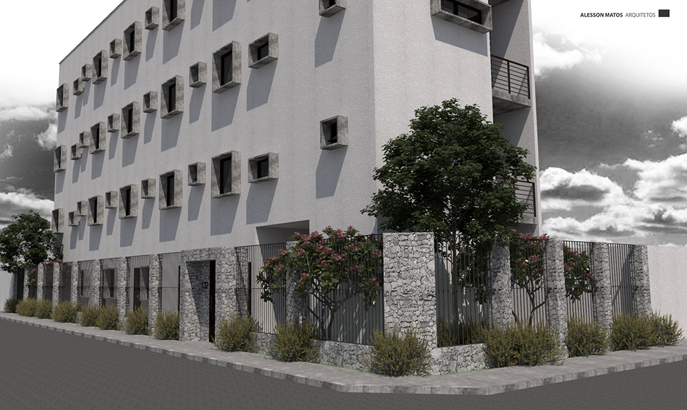 O uso do cobogó, além de seu valor estético e cultural, atua como elemento de ventilação e iluminação natural, favorecendo o conforto ambiental das unidades e reduzindo a dependência de sistemas artificiais. Já o concreto aparente e o cimento queimado reforçam a ideia de uma arquitetura direta, sem excessos, onde a expressão construtiva se torna parte da identidade do edifício.