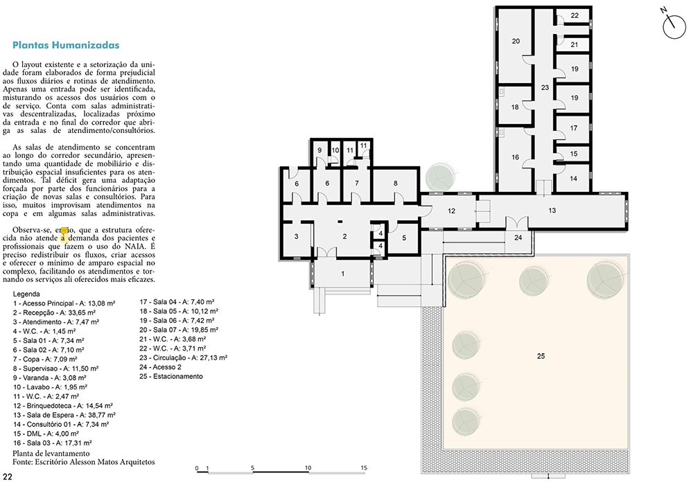 Observa-se, então, que a estrutura oferecida não atende a demanda dos pacientes e profissionais que fazem o uso do NAIA. É preciso redistribuir os fluxos, criar acessos e oferecer o mínimo de amparo espacial no complexo, facilitando os atendimentos e tornando os serviços ali oferecidos mais eficazes.