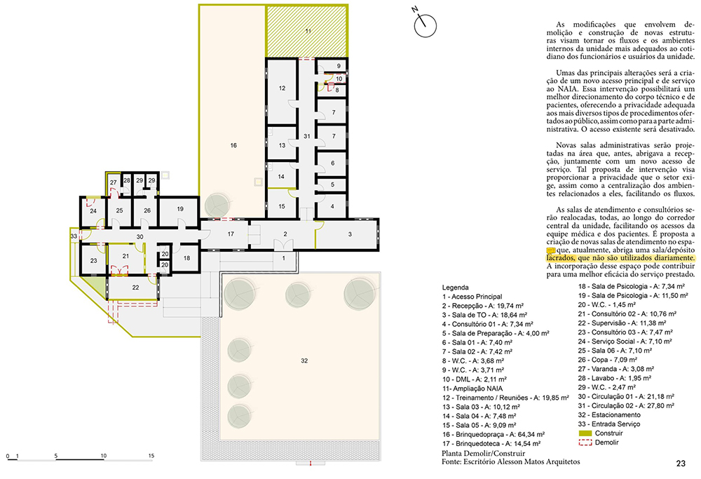 As modificações que envolvem demolição e construção de novas estruturas visam tornar os fluxos e os ambientes internos da unidade mais adequados ao cotidiano dos funcionários e usuários da unidade.