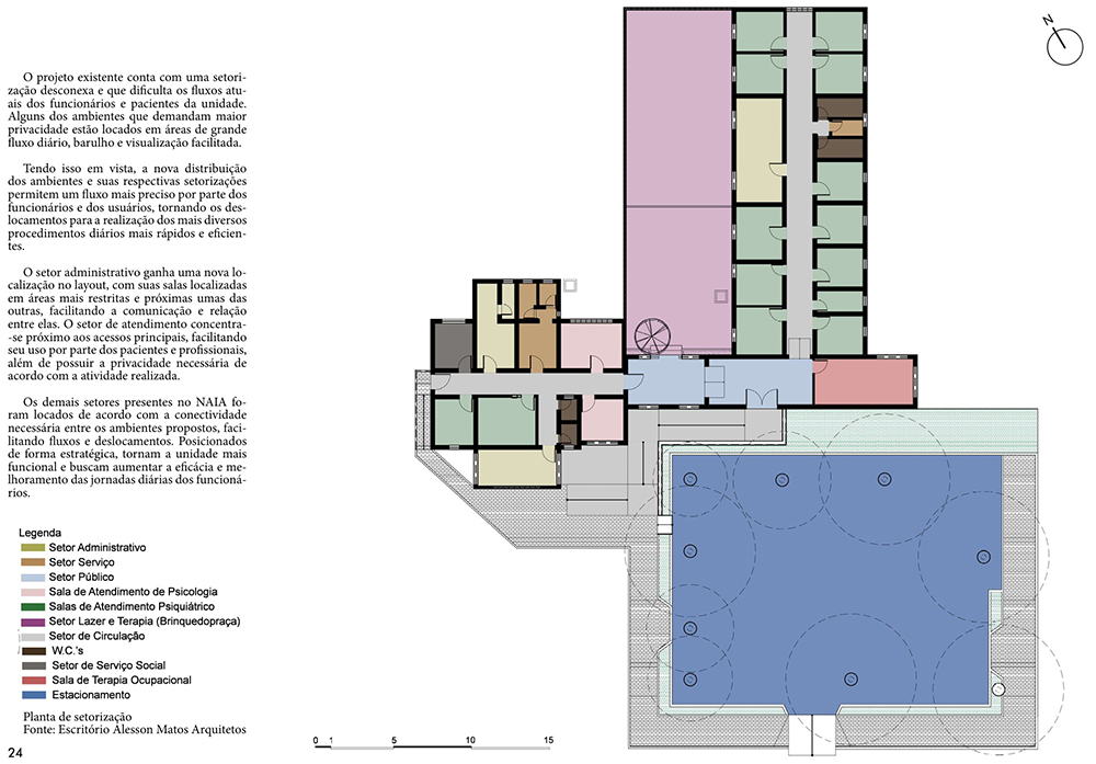 O projeto existente conta com uma setorização desconexa e que dificulta os fluxos atuais dos funcionários e pacientes da unidade. Alguns dos ambientes que demandam maior privacidade estão locados em áreas de grande fluxo diário, barulho e visualização facilitada.