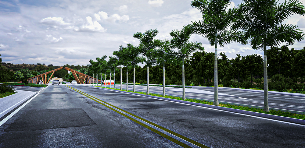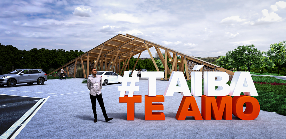 O projeto do Portal da Taíba localiza-se na entrada da praia da Taíba, ao longo da CE-156, nas proximidades do entroncamento com a CE-348, configurando-se como um elemento estratégico de recepção, identificação e qualificação da chegada ao núcleo litorâneo. Com área construída de 90,10 m², área de pavimentação de 2.392,37 m² e área ajardinada de 1.593,80 m², a intervenção busca estabelecer um marco territorial capaz de sintetizar valores culturais, espaciais e ambientais próprios da região.
