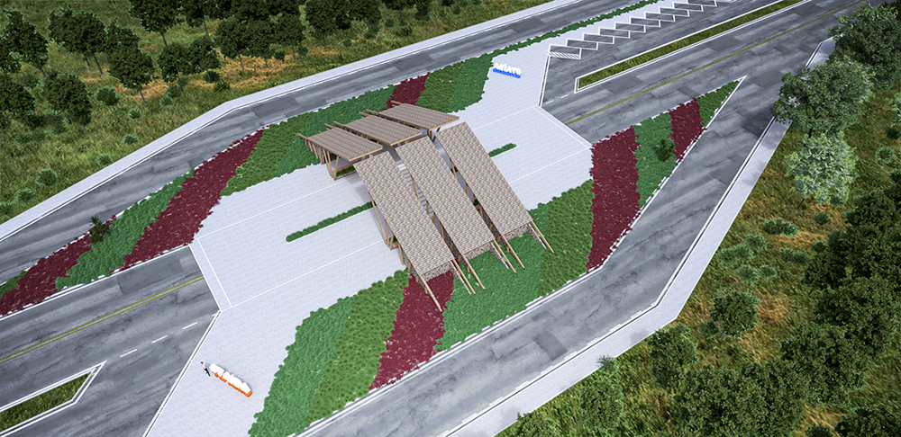 Mais do que um elemento monumental, o Portal da Taíba é concebido como um equipamento ativo, capaz de abrigar usos diversos e promover a apropriação cotidiana do espaço. Nesse sentido, propõe-se um portal-mercado, incorporando módulos destinados a lojas, lanchonetes, sanitários, além de posto policial e ponto de informações turísticas. Tal solução dialoga com uma prática recorrente nas entradas de cidades cearenses, onde o comércio espontâneo à beira da estrada se estabelece como forma de subsistência e interação social. O projeto, portanto, não apenas reconhece essa dinâmica, mas a formaliza e qualifica, oferecendo uma infraestrutura e organização espacial.