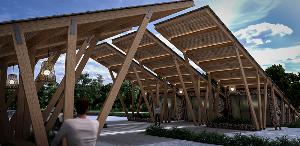 A proposta parte da intenção de conferir identidade ao acesso da praia, transformando-o não apenas em um ponto de passagem, mas em um espaço de permanência e referência simbólica, com potencial para consolidar-se como cartão-postal. Para tanto, adota-se como matriz conceitual a arquitetura popular local, especialmente as casas de praia da Taíba, reconhecidas por seus amplos beirais e pelo uso expressivo da madeira nas estruturas de cobertura. Esses elementos respondem de forma direta às condições climáticas, proporcionando sombreamento generoso e conforto ambiental frente à intensa incidência solar característica do litoral cearense.