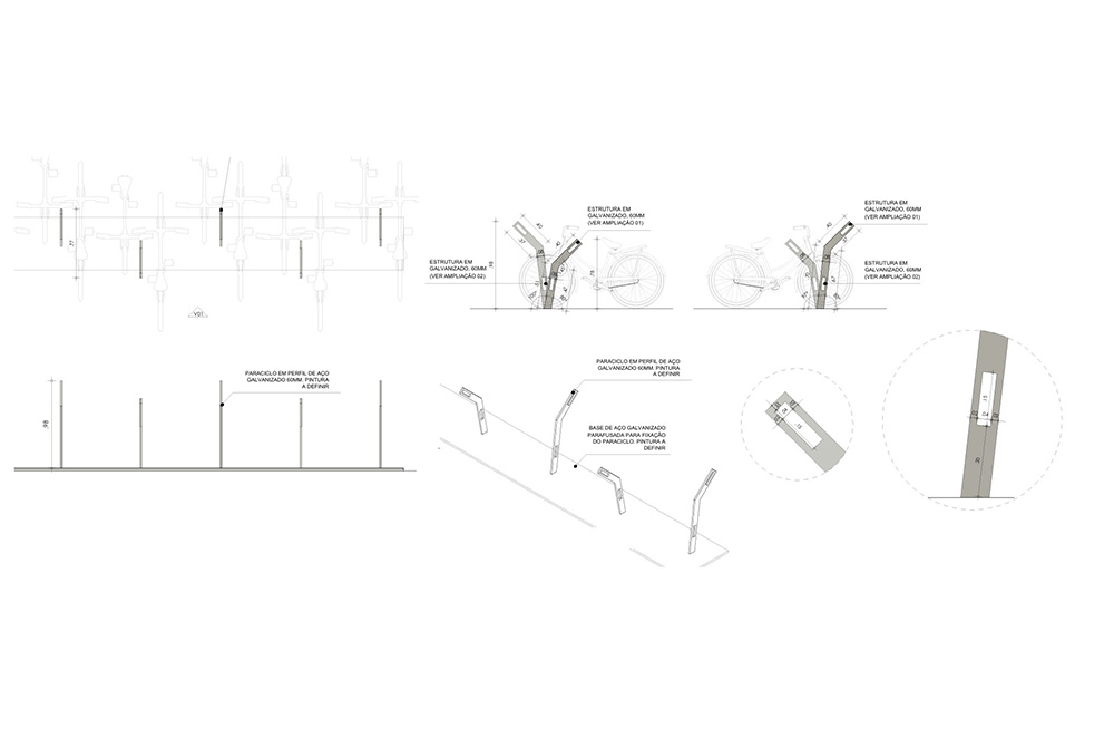 A iluminação pública foi concebida de forma integrada, atendendo tanto aos requisitos funcionais quanto à valorização estética do espaço. O sistema viário segue os padrões da concessionária local, garantindo segurança e eficiência, enquanto as áreas de pedestres recebem iluminação complementar de baixo para cima, destacando a vegetação e compensando as sombras projetadas pelas copas das árvores. Adicionalmente, o grande painel artístico é valorizado por iluminação cênica, assegurando sua presença também no período noturno.