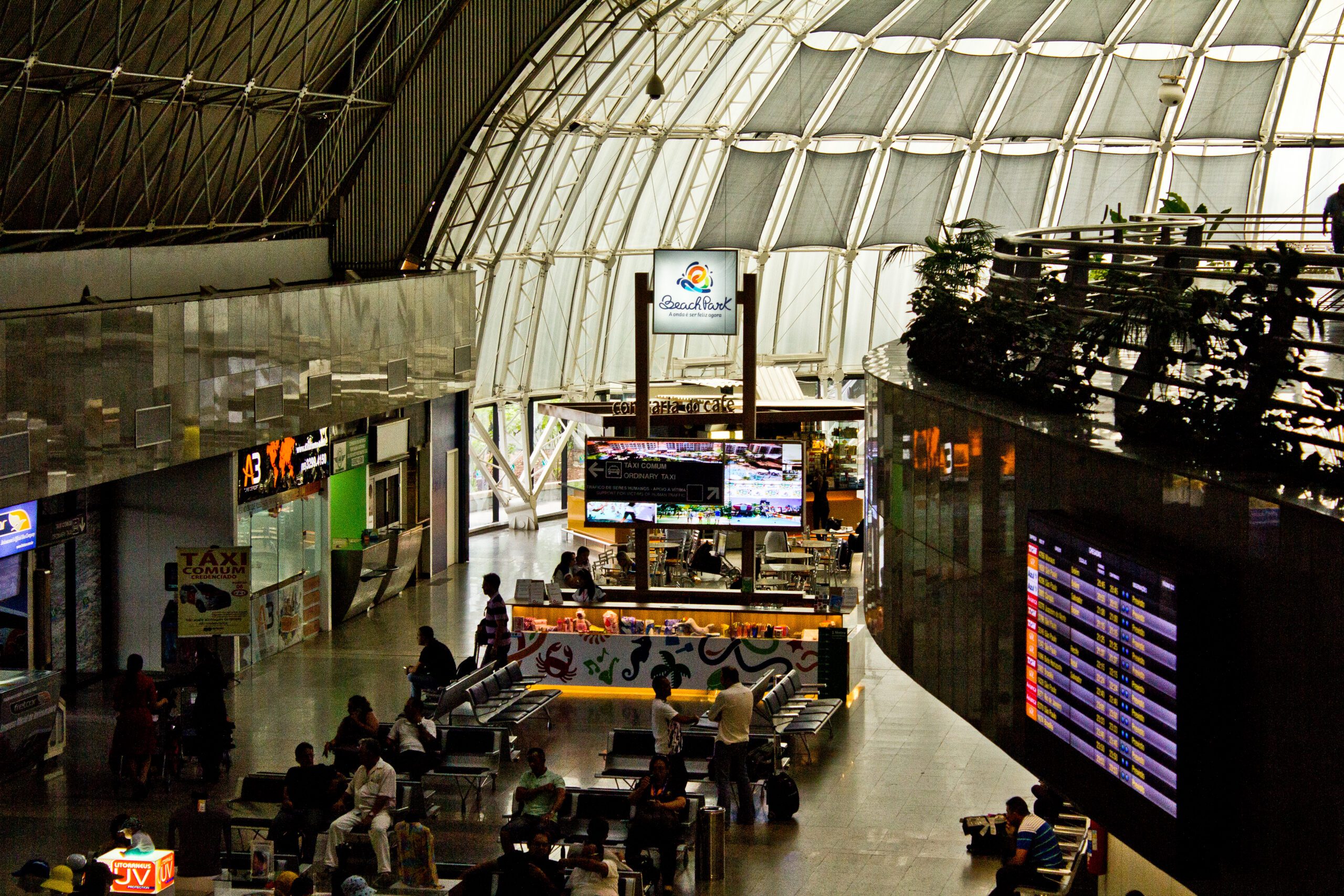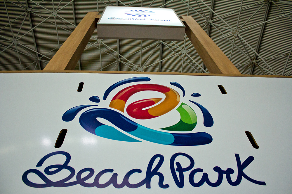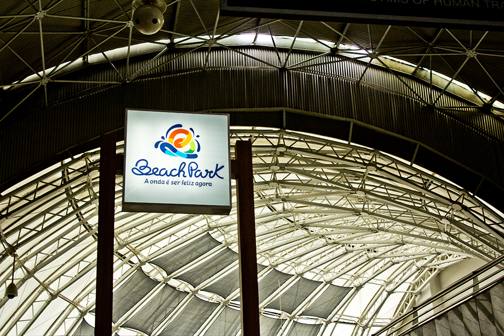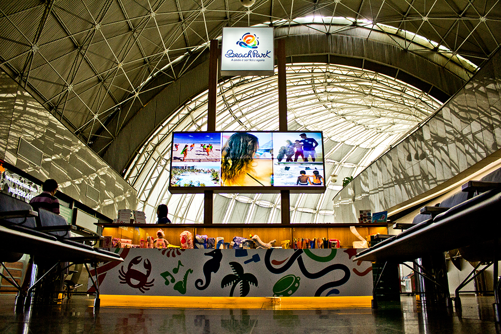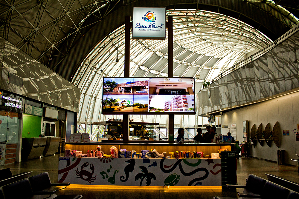 O stand promocional do Beach Park localizado no saguão do Aeroporto Internacional Pinto Martins, em Fortaleza-CE. O equipamento está situado num local do aeroporto nomeado Meet Point, que é um marco físico onde as pessoas podem se encontrar mais facilmente.